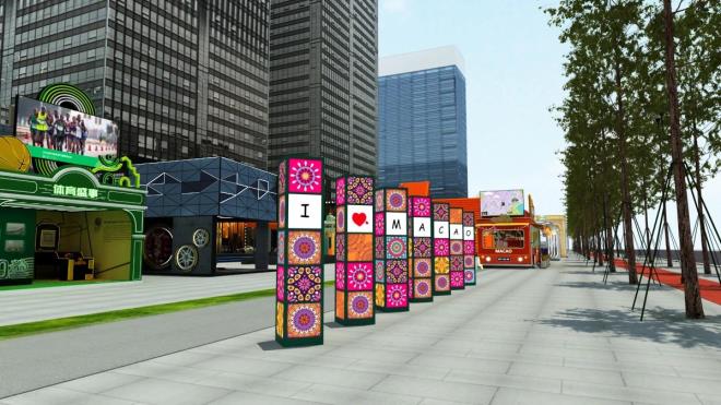 以澳门概况、澳门美食、年度节日盛事为主要呈现内容,结合澳门的特有元素,以城市建筑造型整体设计体现澳门城市丰富的文化、旅游资源。